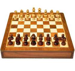 Set di scacchi in legno Sheesham di design personalizzato con tavolo ritagliato da tavolo da gioco comodo da giocare a pezzi di legno e tavola in una scatola